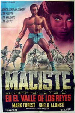 Kroppsbyggaren Mark Forest spelade Maciste i denna film och sex andra som följde i snabb takt. Forest slåss mot jätteapor i gladiatorarenan, underjordiska mullvadsmän och diverse tyranner, barbarer och andra otrevliga typer. Samtidigt som Forests Maciste-filmer rullade på gjorde andra filmbolag sina egna med andra stiliga muskelknuttar importerade från USA. Vid 1965 hade inte mindre än 25 nya Maciste-filmer producerats.