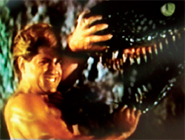 Men det största monstret av alla i filmen måste vara Reg Lewis välkammade raggarfrisyr, som inte rubbas ett hårstrå fast han trampas ner av dinosaurier och får stenyxor i skallen.