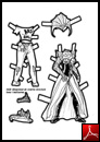 Gör så här: Skriv ut pdf:erna och klistra upp dem på kraftigare papper eller den typ av pysselfolie som används till julpynt. Klipp ut all delarna till dockorna. Använd gärna en liten vass sax. Lägg kläderna över figuren och vik bak flikarna som sitter längs kanterna. I hattarna finns ett svart streck som du skär eller klipper längs med för att kunna sätta fast hatten på figurens huvud.