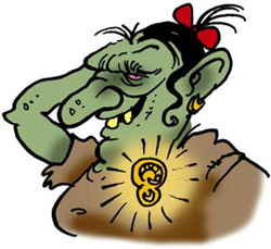 Här ser du två trollsmycken innan de blivit målade. Just här har limmet klämts ut på en gummiskiva som täckts med talk. Då kan man få ut ett smycke med ihåliga mellanrum. Gummiskivan var gjord av en bit slang från ett bildäck.
