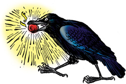 Det lät ju inte roligt, men pojken trodde att han nog skulle klara även detta. Han tänkte på korparna som han hjälpt sluta fred och blåste i sin pipa. De två svarta fåglarna dök strax upp och pojken berättade vad han behövde hjälp med. Den ena korpen gav sig av mot helvetet och när skymningen föll återvände han med ett kol från djävulens egen kakelugn. När korpen släppte kolet på borggården hördes ett fruktansvärt dån och hela slottet skakade i sina grundvalar. Kungen sprang ut för att se vad som hänt, men blev genast bländad av glöden från kolet som var fruktansvärdare än något ljus han sett och någon hetta han känt. ”Nu har du drivit gäck med mig länge nog!” sa pojken till kungen. ”Ge mig nu prinsessan som du lovat, annars ger jag mig hem och helvetesglöden får ligga på din gård i evinnerliga tider!”