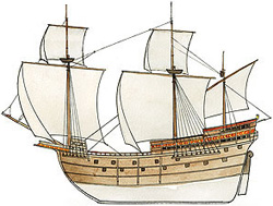 För att kunna ta ombord så mycket last som möjligt gjorde man fartygen ganska flat-bottnade. Att man lät sidorna luta inåt var dels för att man fick kanonernas tyngd närmare mitten av fartyget och för att göra det svårare för fiender och sjörövare att kunna borda dem (klättra ombord) då relingarna kunde vara många meter från varandra.