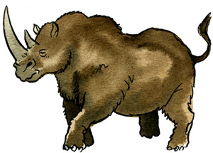 Det här djuret är mer känt som den "ullhåriga noshörningen", eftersom den skinn täcktes av en kraftig, raggig päls. Den levde så långt norrut att den behövde detta skydd.