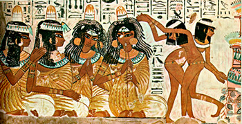 | Väggmålning av välbärgad Egyptisk familj. Minimänniskorna under paret är barnen. |